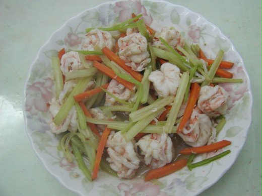 先來道芹香鮮蝦,再來一個紅燒草魚(自家養的魚喲)
