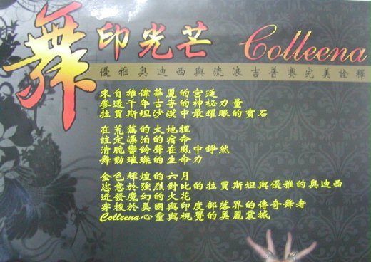 這次的演出是Carrie邀請印度大師Colleena來台做藝術文化交流的演出, 也是第一次舉辦這樣大型的表演活動, 說實在的, 年輕人對舞蹈能有如此熱衷和執著, 我一直都是非常讚賞她的, 這次的表演者都是舞蹈教室的老師們, 精采可期