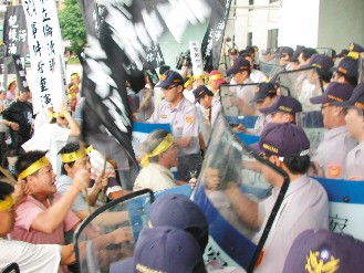 月眉里二百名居民昨天上午率眾到縣府抗議,與警方發生衝突。 記者吳佩玲/攝影 【聯合報╱記者吳佩玲/桃園報導】 2008.09.12 |