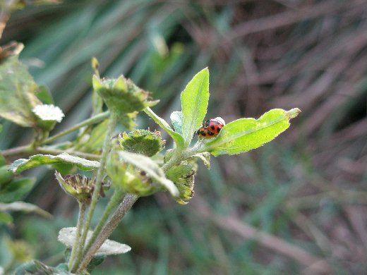 說是有什麼特別,其實也是田間常見的野草。但是,我們這後面的鄰田一直休耕雜草叢生,所以這裡比較沒有農藥的波及,我就發現有好多的昆蟲哦!趕緊叫姐妹們一起看。瓢蟲是她們喜愛的,竟然數量不少,也發現兩種椿蟓,都是吃小昆蟲的肉食昆蟲,這表示牠們的食物豐富哦!