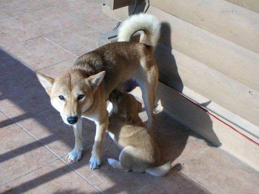 龍龍自從斷奶後來到我家,因為還小所以小朋友比較不害怕,很喜歡和他玩。但龍龍也遺傳了母親的天份,新買的項圈或狗鏈都被他咬斷偷跑,只好改用鐵鏈。籠子則要栓得夠牢,簡單栓一下是會被他竅開門又溜走了。