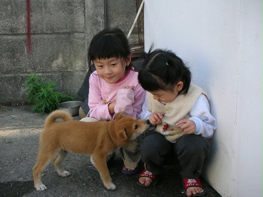 住在三合院是很適合養隻狗來看家的,但顧及小朋友年紀小,一直等到老二五歲了才透過朋友養了一隻柴犬,延用以前的主人取的名字叫做"貢丸"。