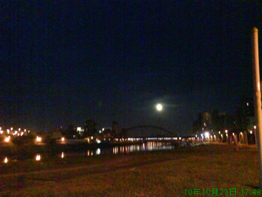 圓圓的月亮高高掛,正好映在河面上,美不勝收