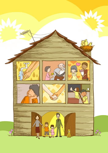 感覺的家,是家人的付出凝聚出來的,具體的家有了,家人生活在這環境,要共同維護它的整齊清潔和美觀,不好的集思廣益去改善它,解決家遇到問題和家一同成