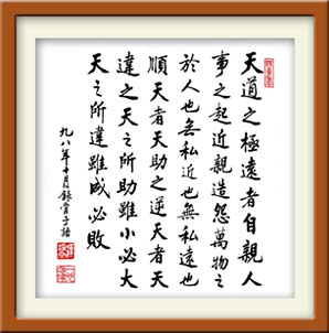 五三、唯此世間。善少惡多。飲苦食毒。未嘗寧息。 「唯此世間,善少惡多」。「唯此世間」是指娑婆世界,五濁惡世是我們現前的社會。現前的社會是善少惡多,這是大家能夠見到的。 「飲苦食毒,未嘗寧息」。飲食是我們六道凡夫不能缺少的,但我們今天的飲食是什麼?「苦」、「毒」。 印光大師苦口婆心勸導我們一定要素食,為什麼?一般人通常在發脾氣時,身上流出來的汗有毒,所以瞋恨心是「毒」,瞋恨心一生起,身體每一個部分都是毒液。從前,婦女生氣的時候用奶餵孩子,沒幾天孩子就死了,這是奶把孩子毒死了。我們再看看,畜生被人殺的時候,牠難道很歡喜的被宰殺嗎?不是的,牠只是沒有能力抵抗而已!但是瞋恚心到了極處,哪有不含毒之理!所以,你吃肉的時日長了,身上累積的毒素發作起來,就是奇奇怪怪的病症,所謂是「病從口入」。因此,我們希望健康、長壽,就要從素食做起,這是非常重要的。說實在話,現在素食也有毒,蔬菜有農藥,但是這總比肉食來得好,毒素少。 五四、尊卑男女。眷屬朋友。轉相教語。自相約檢。和順義理。歡樂慈孝。所作如犯。則自悔過。去惡就善。朝聞夕改。 「尊卑男女,眷屬朋友,轉相教語」。「尊」是尊長,父母、長輩;「卑」是兒女、子姪、晚輩。男女、眷屬、朋友,這是講自己的親族,從一家到一族,再到親戚朋友。我們自己遵從佛的教訓,依教奉行,得到佛法真實殊勝的利益,也要盡心盡力把佛法介紹給他們,勸勉他們學習。他們得到利益了,也會教導別人,這才能真正報佛恩。將此真實之法,互相勸勉、介紹、推薦,擴展到一個鄉、一個城市、一個國家,乃至於世界,社會才會祥和,世界才有和平。 過去,印光大師在上海舉辦了一次「護國息災法會」,印祖說得很明白,如何才能護國?如何才能息災?念佛、吃素。人人都吃素,人人都念佛,災難自然息了,國家自然護了。所以,我們把這個教法推廣到全世界,這是真正上報四恩,下濟三苦,護世消災。 轉相教語的方法很多,譬如印送經書,或流通講經錄音帶、錄影帶、CD、VCD,盡量幫助大眾。而我們自己的目標,就是老實念佛,求生淨土。但是不要勉強別人跟我一樣,只要使人人能存好心、說好話、做好事,使家庭美滿就對了。 「自相約檢,和順義理,歡樂慈孝。」這三句說得非常好,不但我們自己修行,即使推薦佛法給別人,不僅有言說,而且要有身教。如果我們只有言說,自己卻做不到,別人未必肯相信、肯接受。自己一定要切實做到,方能真正幫助別人啟發信心。 「自相約檢」,「約」是約束,「檢」是檢點,自己起心動念、言語動作,都要根據經典的教誨,約束自己,檢點身心。 「和順義理」,與大眾相處要和順,「和」就是六和敬,「順」就是恆順眾生。和與順,不是以感情作基礎,要本於「義理」。恆順眾生是有理論作依據,在恆順中啟發對方,轉變對方;若不能令對方覺悟回頭,就不能隨順。 「歡樂慈孝」,這是做兒女的對父母要孝順,做父母對兒女要慈愛,一家歡樂,這是基礎。由家庭推展就是社會,社會再推展就是國家,國家再推展就是世界,所以要曉得幸福歡樂的根本在家庭。這也是處世待人最基本的要求,這正是大乘經說的,菩薩所在之處,令一切眾生生歡喜心。菩薩決定沒有傷害眾生的念頭,當然更沒有傷害眾生的行為,所以才自己歡樂,人人歡樂。 「慈」是慈悲,平等的慈悲,清淨的慈悲。「孝」,整個佛法就是孝道的發揚光大。以佛法講,「孝」是過去無始,未來無終,豎窮三際,橫遍十方,整個宇宙就是自己一個人,就是自己一體。 「所作如犯,則自悔過,去惡就善,朝聞夕改」。「人非聖賢,孰能無過,知過能改,善莫大焉。」最大的善,就是改過,改過就是聖賢之道。人能夠知道自己的過失,就是覺悟。修行就是改過,改過就是修行。知過是覺悟,改過是真功夫。因此,我們的思想、見解、言語、行為要是犯了過失,就應當悔過。悔過不是祈求佛菩薩原諒,而是真心發露,徹底改過,後不再造。「去惡就善,朝聞夕改」就是真正悔過,覺悟要快,改過要快,發現過失,馬上就改。 <續載中… |