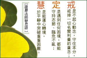 這首偈文及上人的開示話語,多少還滿附和,我目前的心境,多年來總是過於注重色、利、親情,總是無法能徹底放下世俗之見,太過於自我為是,在生活中、自我要求總想做得更完美,甚至於獨段的手法,引起了內人強力的反彈,零零種種犯了很多錯誤,而無能自知,慶幸今天再次出席讀書會,否則又要被自我偏差的行為,造成無法彌補的過錯。