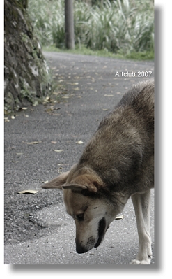 雨後的菁桐,觀光客與拍外景人們的打擾了這個安靜的小鎮,我只好視而不見的畫了一張水彩作品,而小狗也前來作伴。