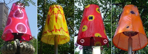 考司將塗了壓克力塗料與密封亮光釉的耐熱帆布捲成圓桶狀,再用鋼繩與 U型螺栓固定在公園的街燈上。鮮豔的紫色、綠色、黃色、紅色、橘色、藍色的燈罩上,繪製有眼睛、英文字母、心電圖、幾何形狀、花與抽象圖案。部分考司的燈飾只是簡單的圓桶狀燈罩,有的燈罩下面則掛有一個個耳環般的串珠裝飾,為原本簡單的燈飾增添華麗的姿態。相較於東南角熱情的紅色與黃色燈飾,東北角的燈飾以冷淡的藍色、紫色調為主。此外,公園西南角的燈罩上以西洋棋為主題的圖案,恰巧配合了街燈下的西洋棋桌,以及站在草地上與花叢間的11個大型西洋棋子雕塑。