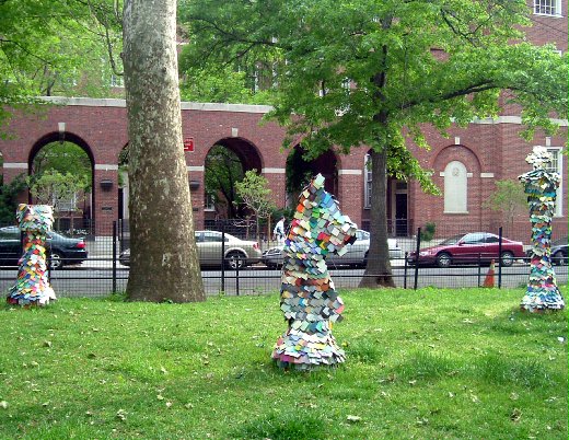 或許因為公園沒有閒置空間和對臨時設立的藝術作品缺乏興趣,格林威治村藝術家瑪裘瑞‧考司(Marjorie Kouns)花了五年時間,與紐約市文化局、公園管理處、華盛頓廣場社區委員會、公園內的棋手等個人與團體溝通、協調後,才實現了多年來在華盛頓廣場設置藝術作品的心願。不僅她的作品呼應所在地的人文環境,贊助者也是來自華盛頓廣場附近的星巴客咖啡廳、格林威治村的房地產公司等社區成員。由於使用現成物與暫時的媒材,考司只花了5萬多美元便完成〈明亮的棋子〉(Well-Lit Chess Pieces, 2005),這個費用可能只是一些大型公共藝術的零頭而已。