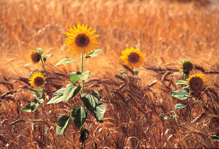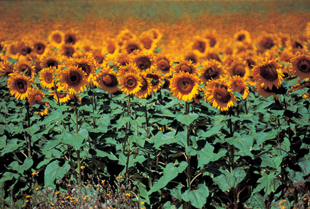 每年夏天,在清澄潔淨的藍天陪襯下,無限延伸的向日葵花海盛開之處,充分洋溢著無限生機與明日的希望。法國所裁培的食用向日葵,不僅花朵大、枝幹粗、莖高大,群聚盛開的花海姿態更是令人讚嘆不已!