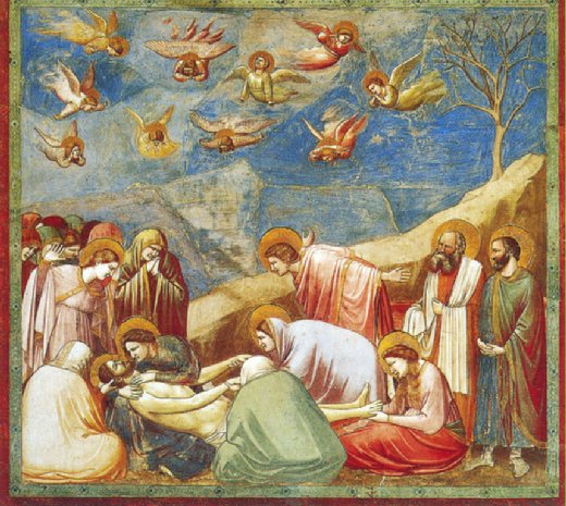圖說:喬托,哀悼耶穌之死,200×185cm,濕壁畫,義大利 帕度亞(Padua)史克羅威尼禮拜堂