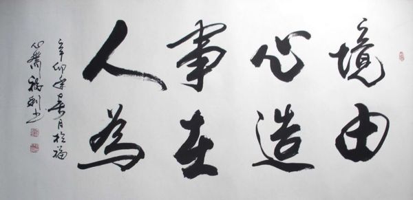 雷先生年逾八十,為人寧靜淡泊,早已進入古瓷人生的境界。他那聯語下句,「境由心造」是佛門折哩,「事在人為」則是儒家精神。綜合這對聯語,上聯要人氣和辭婉,脫除火氣;下聯勸人看得透徹,做的積極,包羅中國人生哲學精華,自為可傳的名聯。