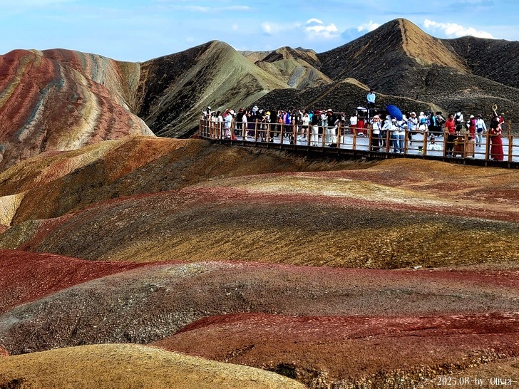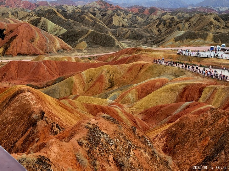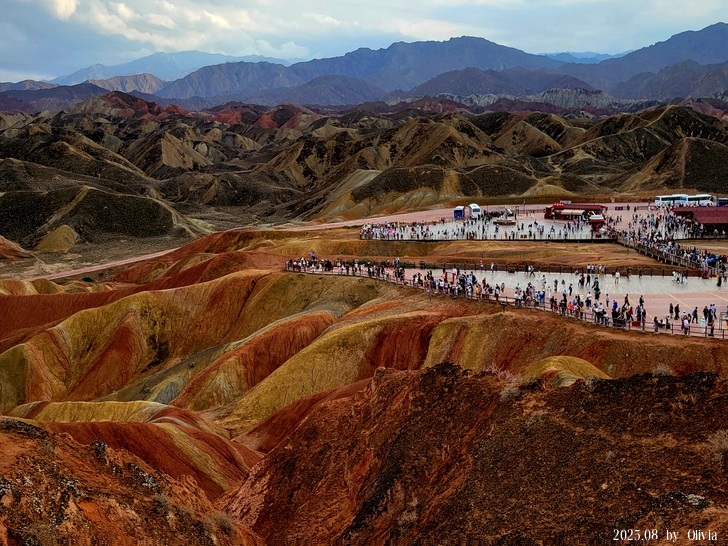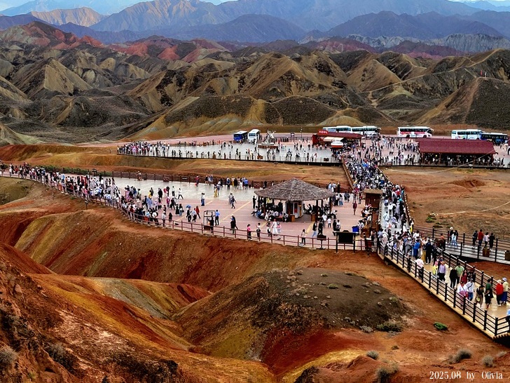 第四站七彩虹霞台,簡直像是個遊樂園,蘭州水墨丹霞動線沒規劃的很好,七彩丹霞卻是太觀光化,不過,這世界奇景,怎麼說都是值得一看,難怪觀光客這麼多。