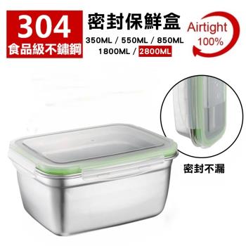 【Bunny】304不鏽鋼超大容量完全密封保鮮盒(2800ML)