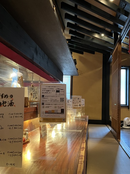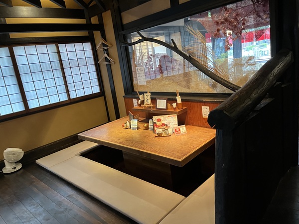 一走進比内地鶏ほっこりや夢京橋店,傳統木造建築看來很舒心,但發現得走在木地板時覺得好尷尬,畢竟我們實在太濕了。