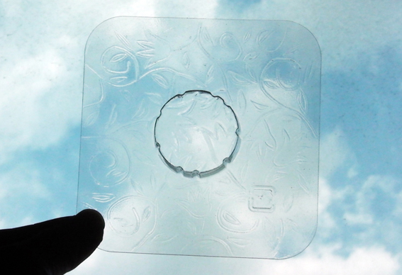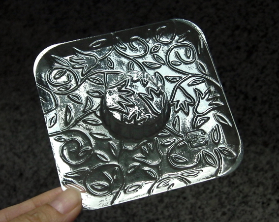 蛋糕包裝裡,有一片很漂亮的塑膠墊片,透明、墊片上還有漂亮的花紋,這個設計真的很美~~~,怎麼辦我捨不得丟,ha~(腦子裡正在打轉著,留下這一墊片的理由及用途)
