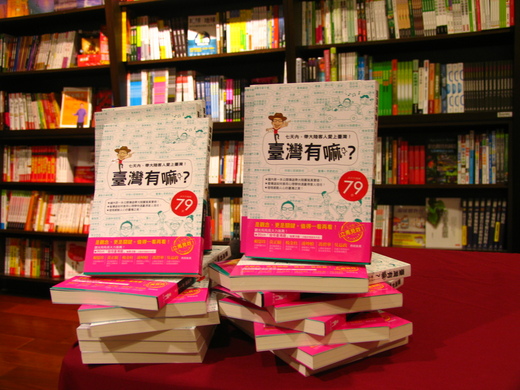店員受不了了,直接從書櫃前拿了一本書交給他,他拿起來一瞧,封面上大大寫著──「臺灣有嘛(ㄇㄚˋ)」(不是「臺灣有嗎?」)
