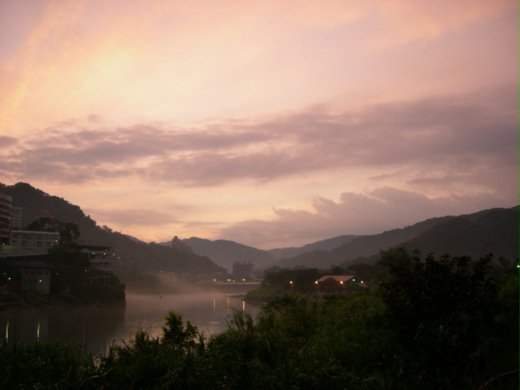 清晨時的碧潭風情萬種,菜園就搭建在左岸山壁水邊,平日倆老每天從永和騎自行車來到此地,先下水來回游完一、