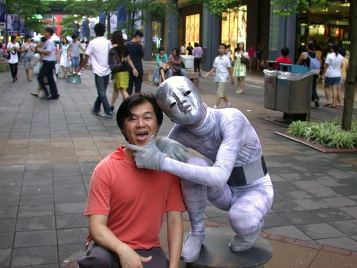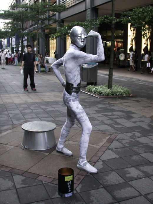 都會看見藝術工作者佇立街頭,故作雕像的樣子