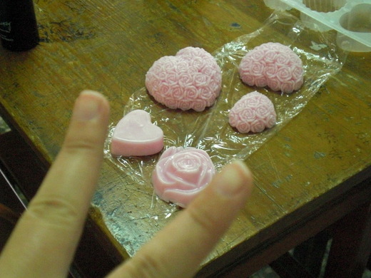 因為倒模後會剩下一些殘留在鍋子上,就可以剝下來洗手,果然很好洗呢,滑滑的又有泡泡,自己做的果然不一樣,呵呵呵呵~!
