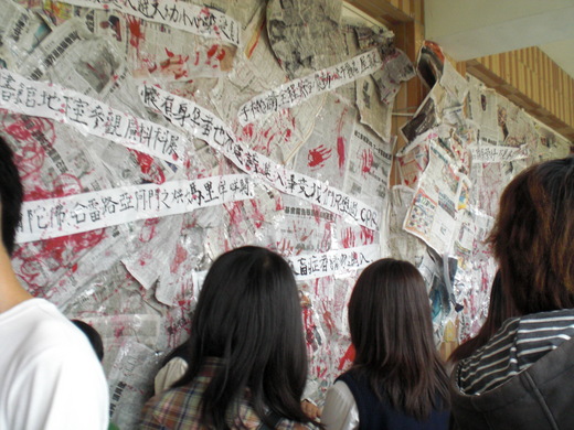 回去途中想說幹脆就走馬看花的晃回去吧,二樓剛好就是『等你』廣二2鬼屋了,既然手中有票,現下還早,沒甚麼人,機不可失,進去吧~緊張緊張~刺激刺激~彰商廣告設計科的鬼屋,真的不是蓋的,繼去年的『屍眠』這次的『等你』更有日本鬼片的feel~許多趴在地上(爬行)的鬼們,更令人毛骨悚然,即使只是站著不動,臉上可怕又逼真的妝容,手中的鬼娃娃,讓人嚇出一身冷汗也綽有餘了,尖叫聲~絕對少不了,從頭嚇到尾、叫到尾,十足的精采刺激,不枉費32元的票阿~(雖然玩完之後,沒有像去年那樣心理的感覺那麼深刻,不過確實感覺比較可怕,和地上的鬼有關吧~現在都還有點毛骨悚然耶~)下樓買了紀念書籤,喔喔~永遠的驚嚇紀念是嗎~呵呵呵~~