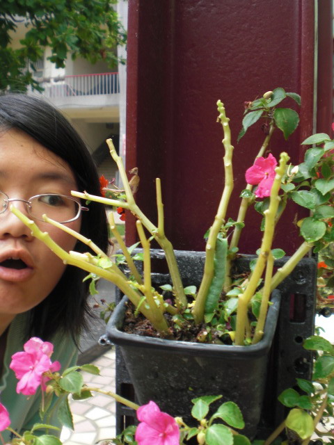 同學在澆花的時候發現的一隻好大好大的綠毛蟲,給他起了一個名字叫“大毛”幾乎有我一隻食指那麼長耶!鳳仙花都被她吃的禿禿的了,同學摸了他說好好摸,都摸上癮了,不過我還是不太敢摸他啦!