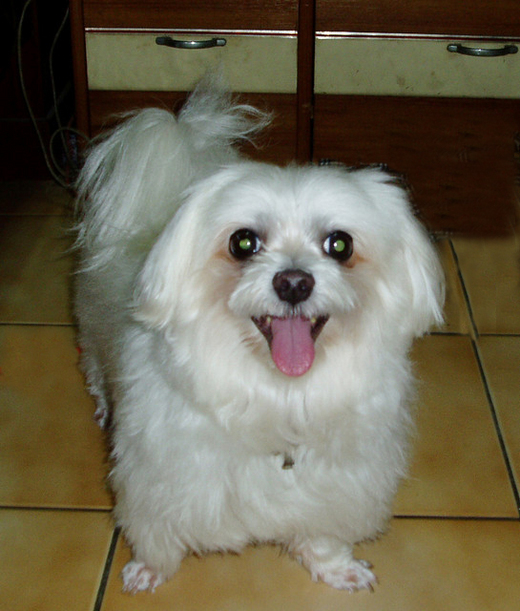 因為對牠的懷念,我們決定再養一隻白色的瑪爾濟斯。真有緣,過不久我們真的又領養了一隻白色的小狗,我們叫牠Happy 也是很可愛。