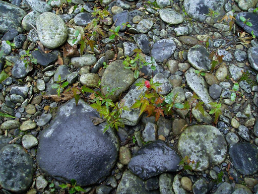 前陣子和友人往南勢溪上游的福山,溯溪、釣魚,在一處溪邊的砂石堆上,發現很多剛冒出嫩葉的楓樹苗,看見亮麗的樹葉充滿生命的活力,有點感動。我們路過時小心奕奕,深怕踩了小樹,但是看看它們生長在行水區上,心想可能活不了多久,它們的命運早被當時吹落種子的那陣風決定了,過了不久果然遇上這次的莫拉克颱風全都被沖走了。