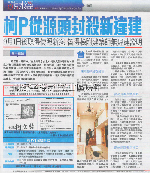 柯P打房新政策.松山區房仲,松山區東森,東森房屋蔣宗玹0935-181718