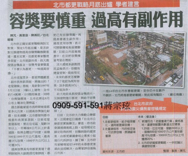 都更容積獎勵【591591】【591房仲】【591蔣宗玹】【591台北】【樂屋網買房】【好房網房仲】【東森房屋蔣宗玹0909-591591】