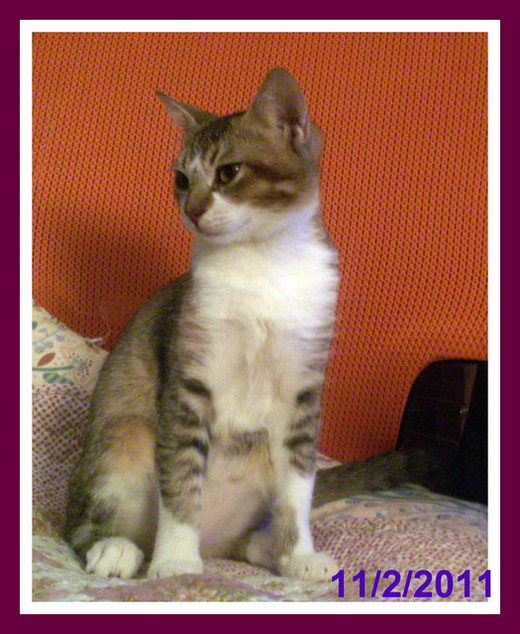 隨著時間的過去它也漸漸的長大,臉部和身上的毛紋愈來愈明顯和漂亮.行為安分許多,衛生習慣也很好,還能聽些簡單的指令,讓我愈來愈喜歡它了.