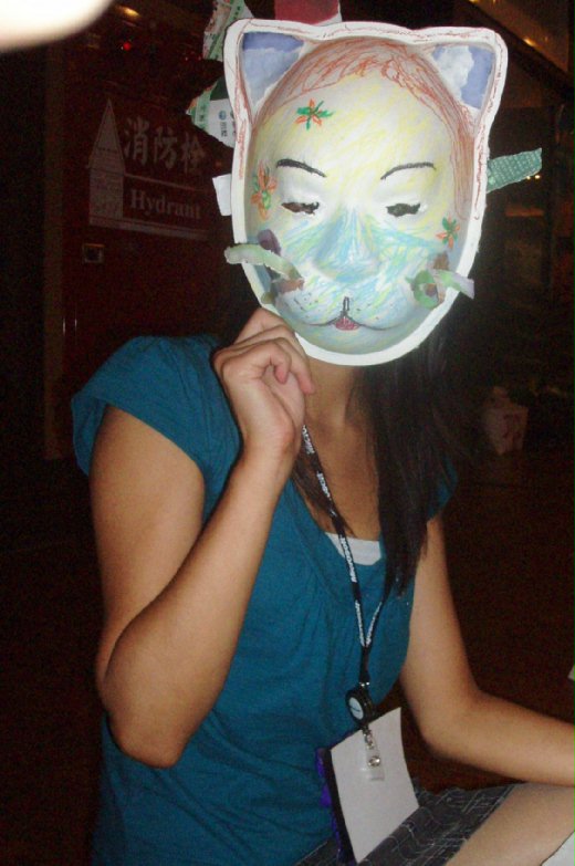 活動以「歌劇魅影」為晚會主題,大家用貓面具畫出自己喜歡的色彩進行走秀。另有各種物件為主題的演技大考驗,大家莫不絞盡腦汁,爭取佳績。「以報紙為主要素材的貓面具設計,用最環保的回收資源概念,創造完美的繁複風格,將帶領時尚界走上另一個高峰。請歡迎我們的「報報貓」的華麗豋場。」這是我在晚會的時候,幾秒鐘所寫下的即興介紹稿。