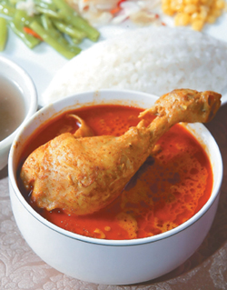 1娘惹咖哩雞飯:重口味的咖哩,用椰漿熬煮而成,主廚另加入南洋香茅增加香氣。辣得冒火,推薦給嗜辣者享用。100元
