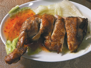 2海南炸雞腿飯:自製的糖醋加上辣椒所形成的酸、甜、辣口感,炸物的焦香,是不同於海南雞飯的美味。100元