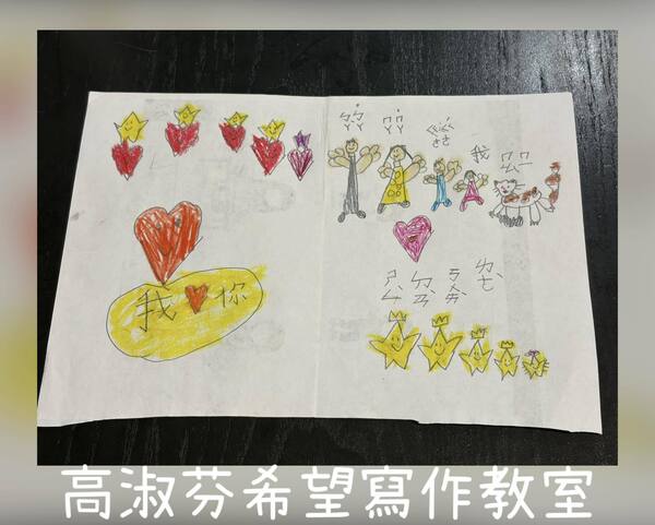 妞妞說:「謝謝老師教我功課,我要感謝她。」於是她畫了卡片送給老師。