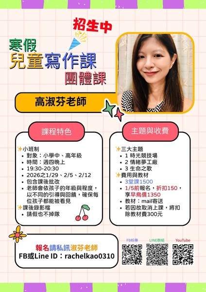 📍 【高淑芬老師|兒童創意寫作課】