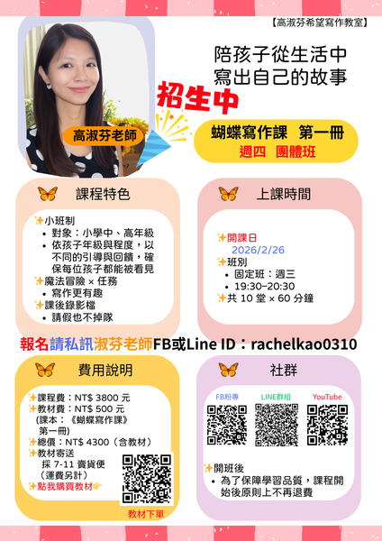 蝴蝶寫作課 寒假兒童寫作課 #高淑芬老師 #高淑芬希望寫作教室