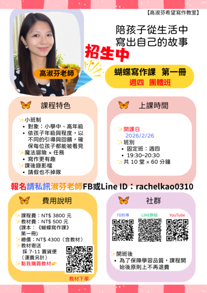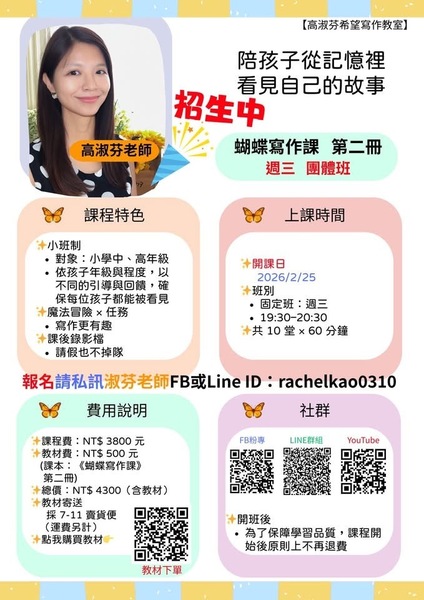 這正是「蝴蝶寫作課」想給孩子的東西。
