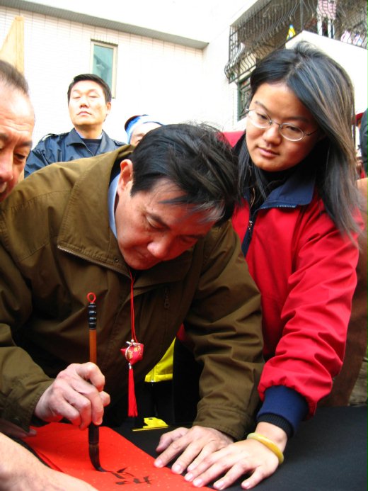 今天是中華民國九十七年元旦,為歡欣迎接新年到來,國民黨總統候選人馬英九與立法委員候選人王昱婷在元旦當天,一起到眷村熱鬧迎新春,聯手向台南市民眾拜年,祝賀大家恭賀新禧。馬英九親筆揮毫寫春聯外,更與王昱婷親自民眾同心協力搓湯圓、煮湯圓,把濃厚的年味提早帶入眷村,也為選情加溫。
