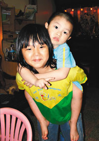 因為小弟弟急著找媽媽,路上車子又很多,我才會一直揹著他。」