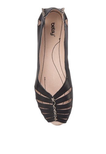 BETSY 的鏤空露趾漆皮平底鞋,有光澤的漆皮鞋面設計,配以局部鏤空與魚口露趾,是簡約百搭的休閒鞋款。