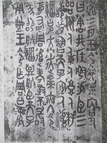 講書法史,從殷商的甲骨文始─甲骨文雖是中國最古早的文字,但就書法而言,最早呈現書法藝術之作的,老師認為是鑄刻在周朝時之“周公敦”。