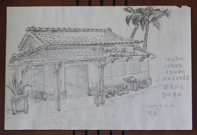 2.鉛筆勾勒老車站 木窗黑瓦見滄桑 日式屋 矮磚牆 今古相望心暖暖/