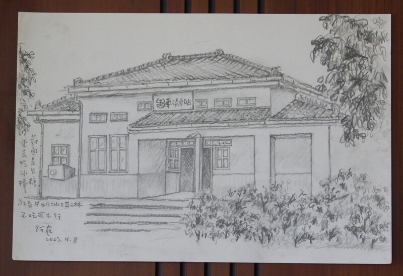 落款釋文a.木梁木窗古長椅 售票口古意 編竹夾牆卻是泥外觀 真格兒老站