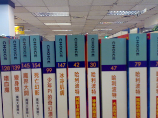 走著走著,到了一櫃現代奇幻小說櫃,一整排紅色書背的書
