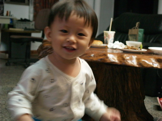 他踩著跳動的腳步,臉上掛著燦爛的笑,跳了進來,謹慎的他會停下腳步,觀察一下,待他明白眼前的一切都是他所擁有時,他的笑像朵大大的向日葵,飛奔的繞著客廳跑,引誘著人來追他。