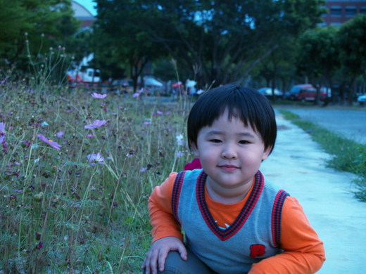 大兒子在旁邊尖叫,他要四歲了,知道花不可以吃,不過,他的尖叫有興災樂禍的性質,「弟弟,不可以吃花。」他說,一邊又很期待看到弟弟把花瓣吃掉的模樣兒。