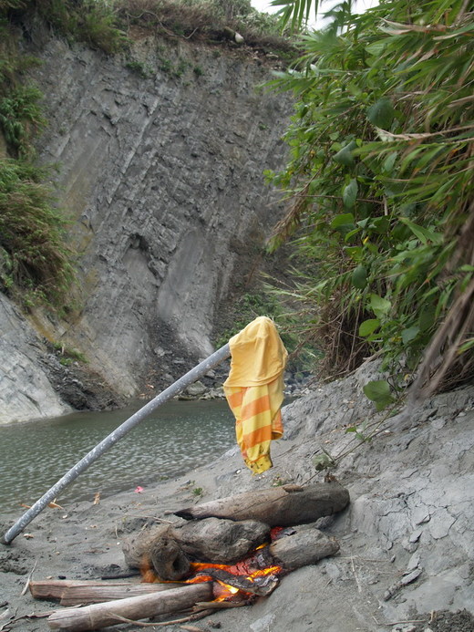 我怕冷,連水都不太去踩,只好發揮我的「專長」,在沙灘上升了好幾堆火,坐在火堆邊烤他們的溼衣服……