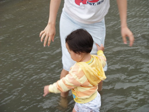 老婆一直覺得好笑,拉著小子誼踩水,也很有技巧的閃躲著相機鏡頭。