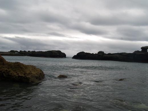 港口的右側,「石雨傘」下是片沙灘,這港是依著礁岩而蓋,礁岩就是防波堤,如果除去了港岸處用頓計算的水泥,這將會是個怎樣的絕美港灣呢?